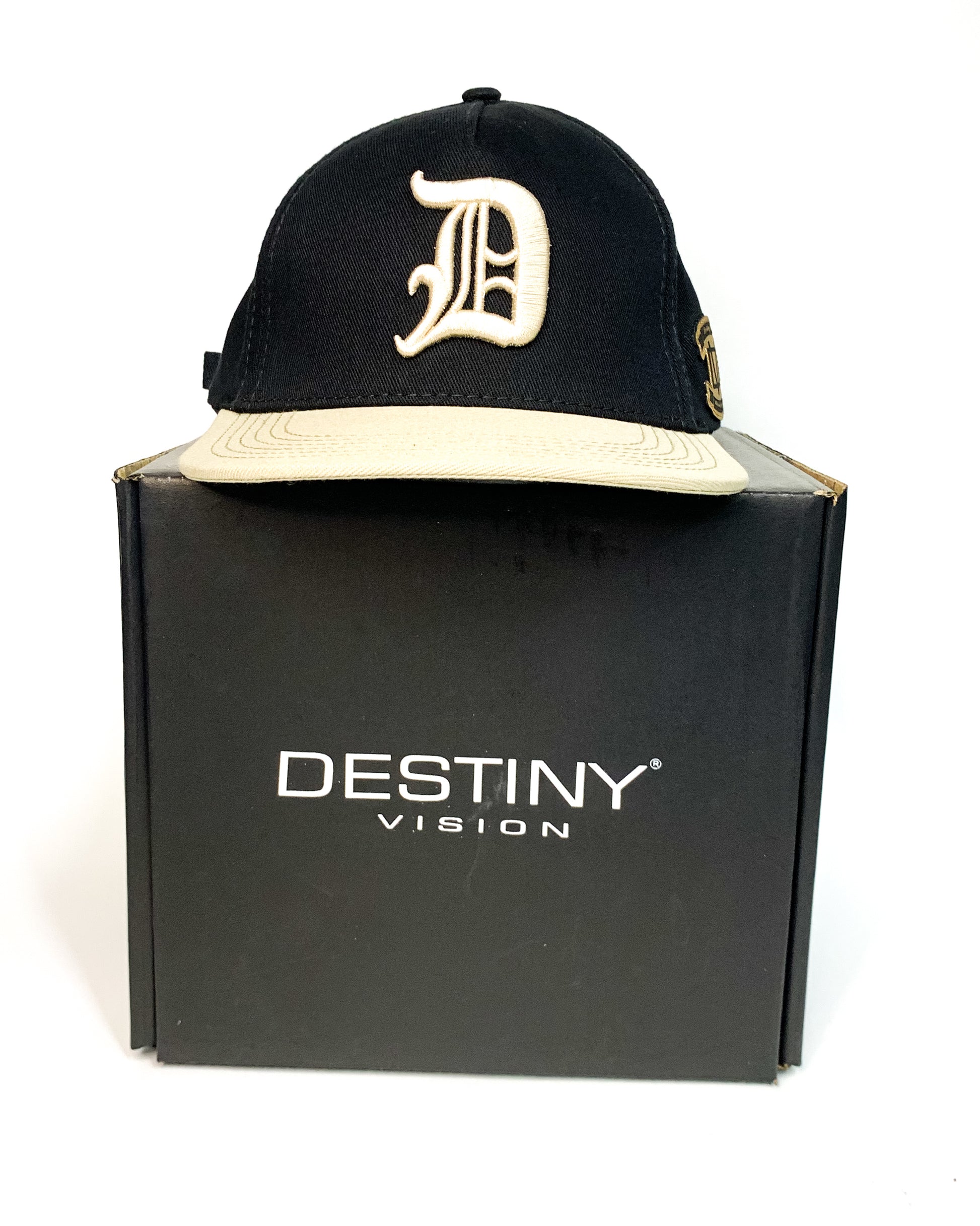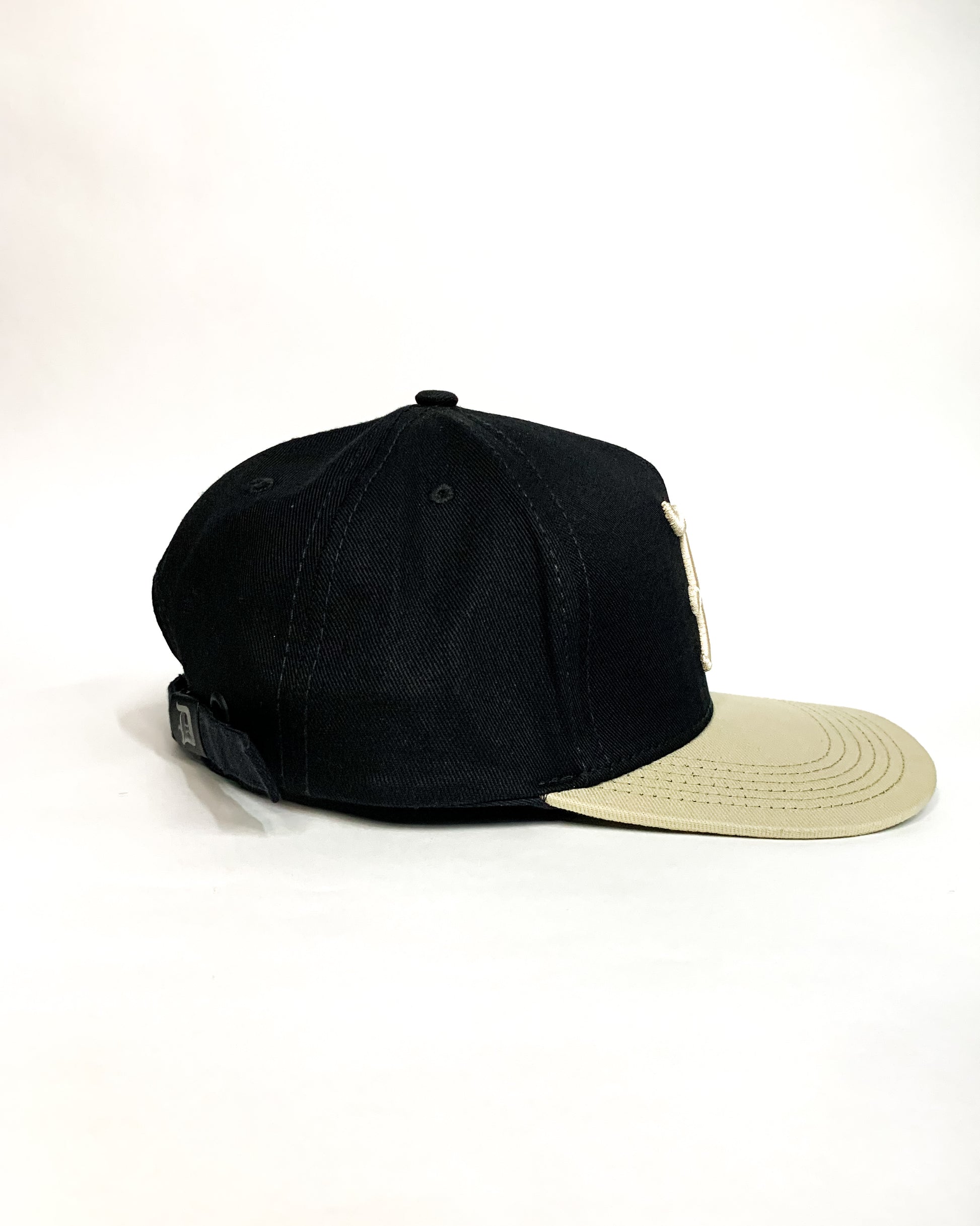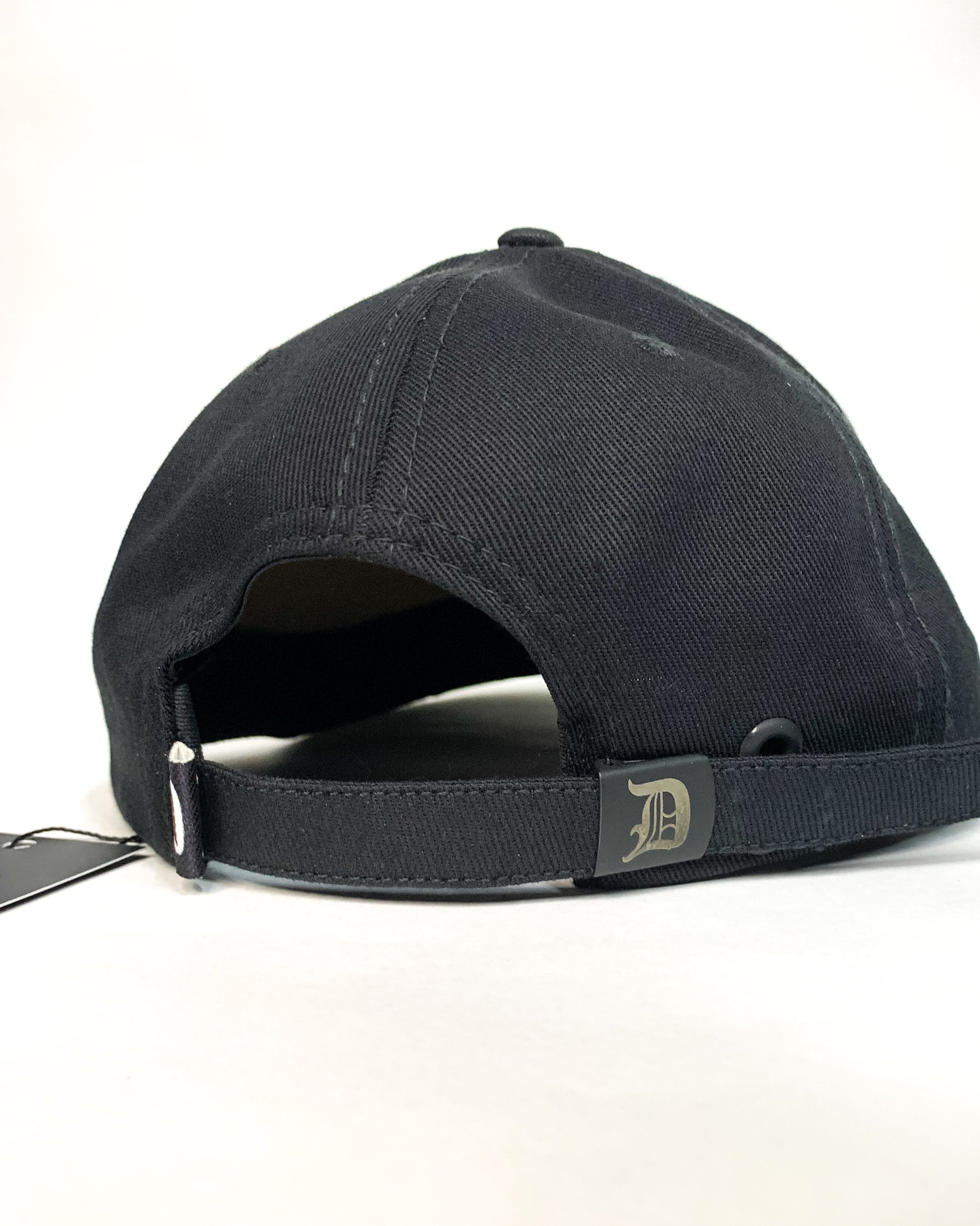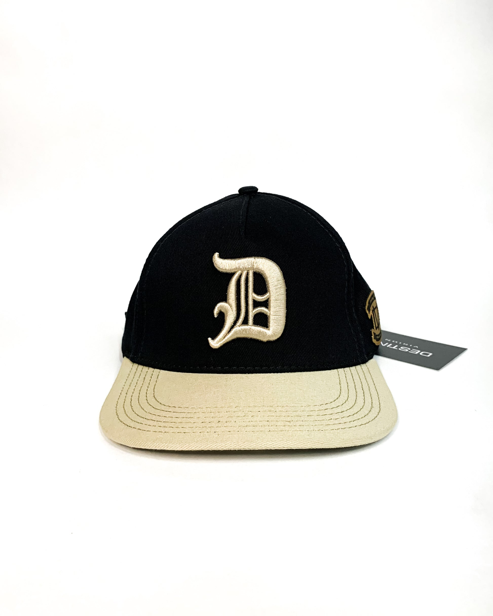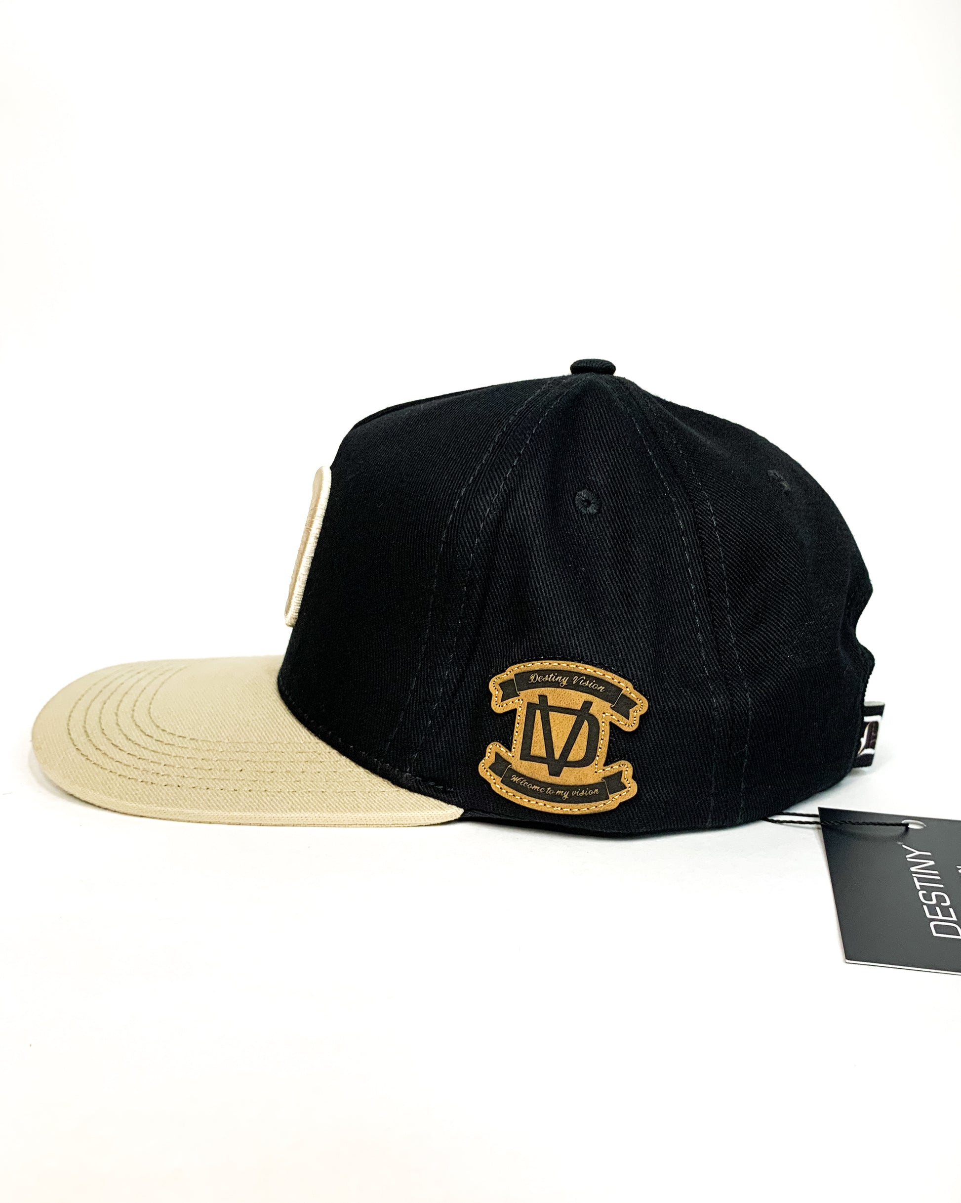 Gorra ajustable de color Negra con visera beige 100% original con Inicial D gótica en alto relieve, hebilla marcada ,Marquillas interior y exterior, cesgo marcado y grabado en cuero por el lateral con una textura única.